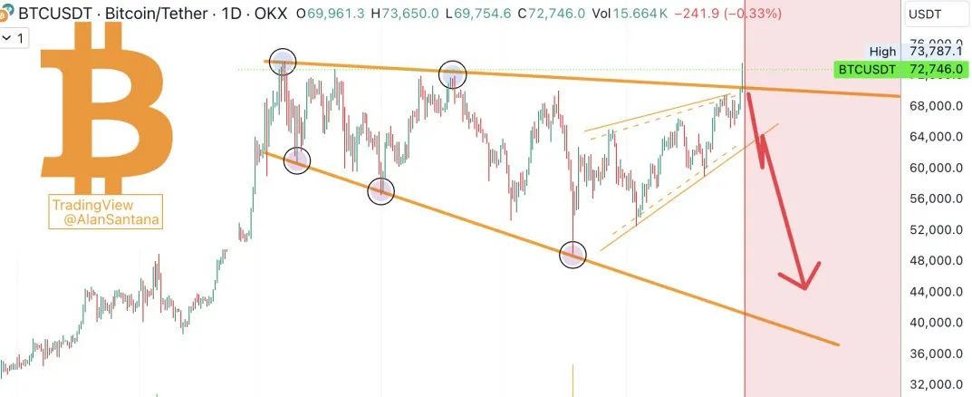 在市场高度期待比特币冲击10万美元之际,加密货币分析师Alan Santana表示,虽然比特币突破7万美元是极具看涨意义的举动,但需要进一步确认才能建立可能推动价格至10万美元的稳定上升趋势。