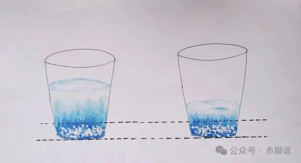 再来看看这张图:杯子里糖量相同的情况下,左边的杯子里水多,右边的杯子里水少,后者的糖浓度更高。