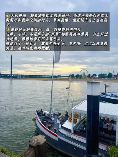 ✅ 可以顺路走到莱茵河边喝杯啤酒,看晚霞沉下去