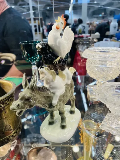 这个展会一年举办四次,门票8,规模我感觉仅次于莱比锡的月度古董集市,不过这个展会的最大特点就是中古品的质量比较高,有一些很专业的摊位,比如油画、家具、宗教题材的古董以及中古银器非常值得看,就像逛博物馆一样,真是大饱眼福。另外一个特点就是有很多专卖首饰的摊位,导致直播带货大军早早进驻并架起设备开始激情澎湃的直播,我在现场看到了好几位小里的知名带货大姐,佩服他们的滔滔不绝的口才