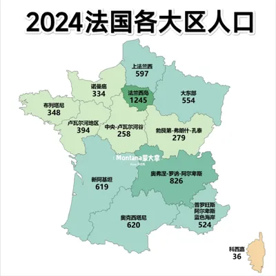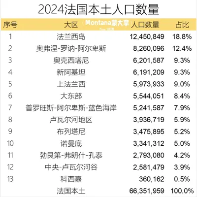 2024法国本土各大区人口,法兰西岛占近20% ...
