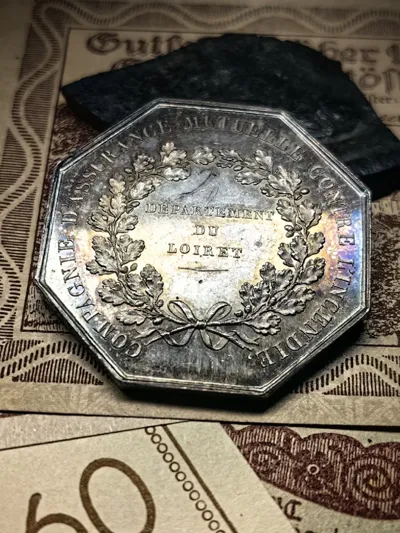 这么快都更新到第十期啦,那我们这期就来欣赏一枚比较大型的银章:卢瓦雷省互助火灾保险公司银章。