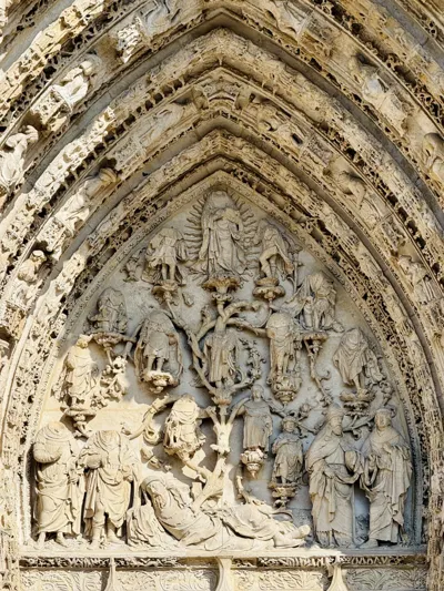 鲁昂大教堂最大的看点就是立面那繁复精巧的火焰哥特式装饰,令人叹为观止。火焰哥特式(Flamboyant Gothic)是哥特式建筑晚期的风格,最显著的特点是其装饰性的火焰状的曲线和复杂的花饰窗格。