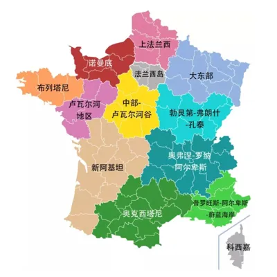法国本土划为13个大区: