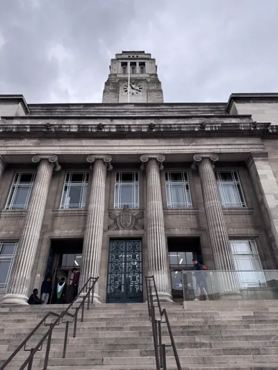 3.博物馆出来,可以选择坐公交车,去利兹大学看看,除了校园,很网红的一个地方是张国荣曾经就读的纺织学院,那张长椅上常年会有粉丝敬献的鲜花。(图4、图5)