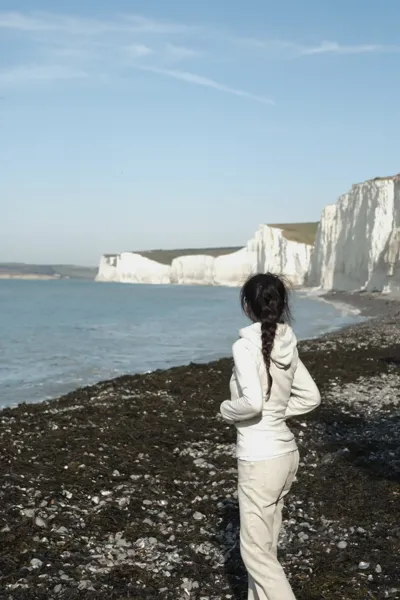 七姐妹白崖(Seven Sisters Cliffs)是由白垩岩(chalk)构成的海岸悬崖,白垩岩大约在 白垩纪时期(约1亿年前) 形成,由远古海洋里的微小浮游生物沉积压实而成。经过海浪侵蚀、风化,才雕刻出今天连绵起伏的七座“白色山峰”,洁白峭壁直接面对大海,壮丽又纯粹。