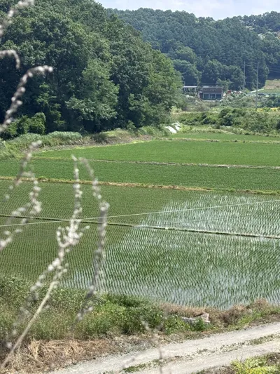去堤川的路上,我在原州市中转,这是江原道西南部的另一个城市,人口26万,车站附近没什么人,但有大片的水稻田,风景优美极了,随意溜达溜达,心情很好。