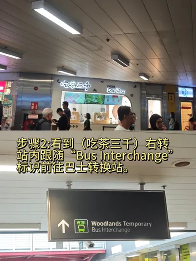 2. 出站后跟随站内“Bus Interchange”标识,步行前往兀兰临时巴士转换站,搭乘 950路巴士,前往新加坡兀兰关卡(Woodlands Checkpoint)。