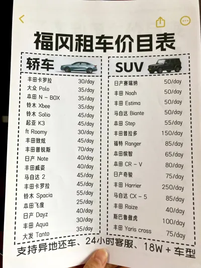 芝麻分550+免押金,支持异地还车(福冈取→熊本/长崎还)