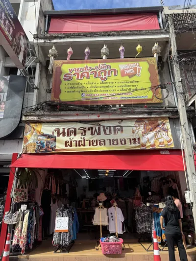 然后接着又打摩的去了瓦洛洛市场,几分钟就到,去了这家服装店,他们可以WeChat和Alipay直接换泰铢,11/17上午的汇率是4.56。现在是要1000人民币起换。过程很简单,他给你收款码,你WeChat扫码转账,然后确认泰铢金额后直接就给你了,也没看我的护照,而且态度也很好。