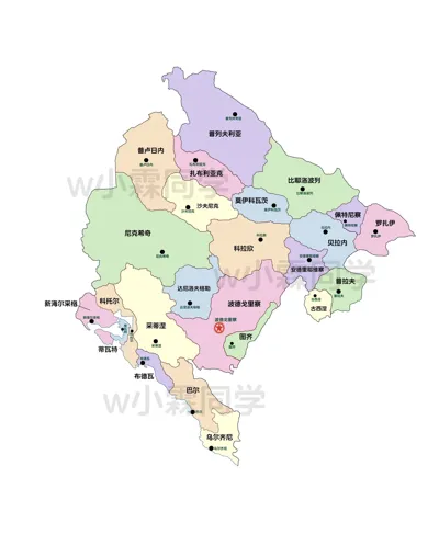• 沿海大区(8个):巴尔、布德瓦、科托尔、新海尔采格、蒂瓦特、乌尔齐尼、采蒂涅、图齐
