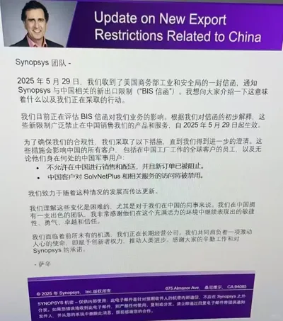 2025年5月29日,我们收到了美国商务部工业和安全局的一封信函,通知Synopsys 与中国相关的新出口限制(“BIS 信函”)。我想向大家介绍一下这意味着什么以及我们正在采取的行动。