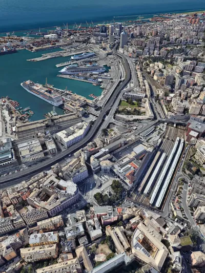 上帝视角下的热那亚,盘踞利古里亚海岸弧形湾畔,层叠山城与地中海辉映的「文艺复兴港口迷宫」,错落的红瓦屋顶勾勒出「哥伦布故乡的航海史诗画卷」。这座「2004欧洲文化之都」以其中世纪街巷、贵族宫殿群和传奇航海血脉闻名,是热那亚共和国的海洋霸权象征,堪称意大利的「海洋帝国活化石」。热那亚是一座交融贵族荣耀与港口烟火气的魔幻山城,城市地标包括:
