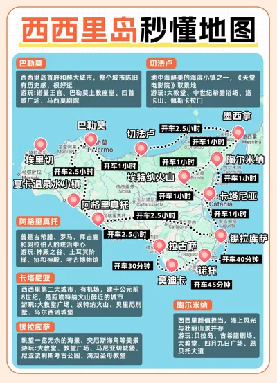 来西西里岛不知道怎么玩可以看看这篇干货的旅游攻略!里面包含了西西里岛地图➕景点等信息近期准备去西西里岛的朋友,希望对你们有帮助