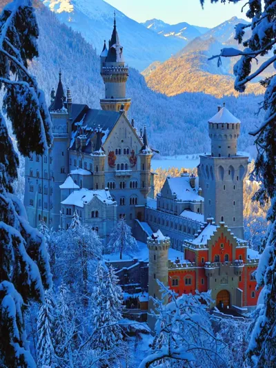 是德国的标志性建筑,也是迪士尼城堡的灵感来源,被称为“灰姑娘城堡”,背靠阿尔卑斯山,面朝阿尔卑斯湖。