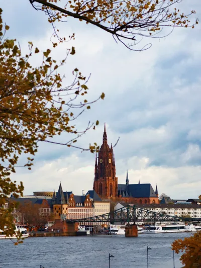 走向美因河畔(Mainufer),城市终于敞开了心。跑步的、散步的、坐在长椅发呆的——每个人都在与秋天交换一口温柔的气息。夜色里,铁桥(Eiserner Steg)跨在河上,灯光落在水中,像把喧嚣和静谧分成两半。你可以任意选择自己的一边。