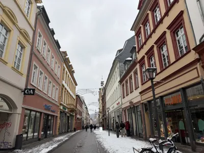 中午到了海德堡的主火,然后走几步,坐了有轨电车,到了脾斯麦广场,在主街步行,浏览道具两边的建筑(其实一般,没啥看的),到了海德堡大学(其实也一般,好像是节日原因,没啥看的)