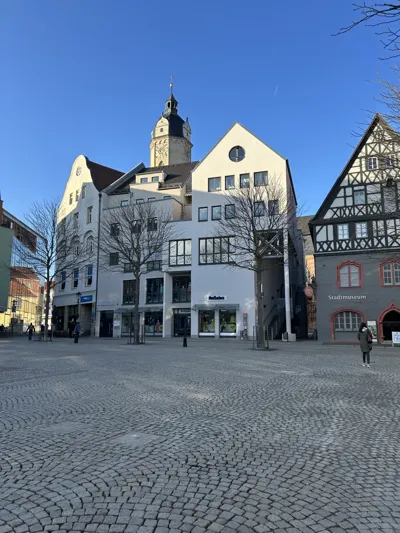 第一天的耶拿(2-4)算是个小山城,我们从城市西边的车站一路往老城区走,城市道路迂回又时有起伏。城市博物馆面对着老城区的广场,广场周边有一些改造非常不错,使场地周边建筑的立面风格保持一定的连续性,同时又很克制地在立面上做减法,透露出一些广场背后的教堂;