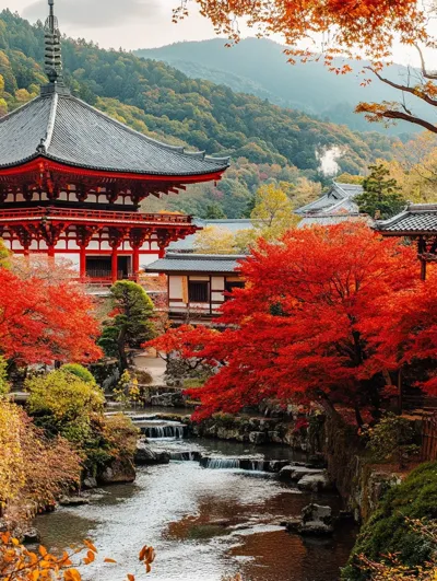 在南禅寺脚下的茶寮坐下,点一杯枫叶抹茶。看对岸渡月桥被染成赤金色的背影,远处传来风铃叮咚——原来秋天是有声音的,是红叶落在苔庭的簌簌,是古钟余韵里的千年回响。