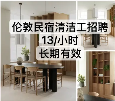 民宿清洁工招聘要求:必须有英国银行卡