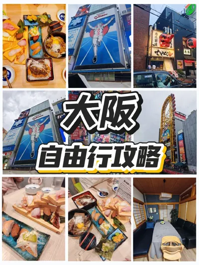 大阪城公园(地铁20mins)心斋桥筋商店街(步行5mins)道顿堀(步行15mins)难波 CITY(地铁20mins)通天阁 × 新世界(晚上可选)空庭温泉