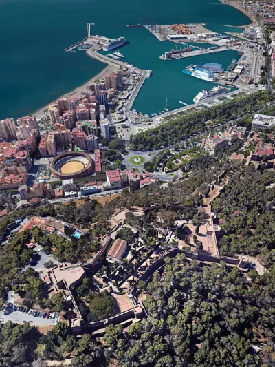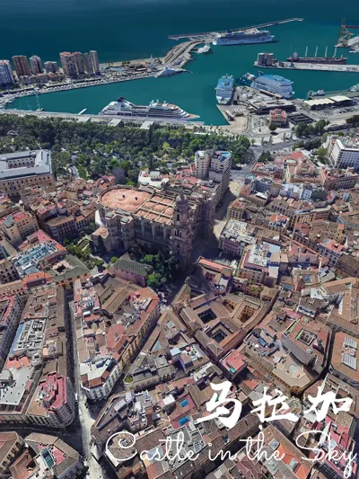 上帝视角下的马拉加,悬浮于安达卢西亚太阳海岸,地中海波光与丘陵地貌交融的「阳光艺术枢纽」,层叠的白色建筑群勾勒出「千年古城拥抱地中海的立体画卷」。这座「毕加索故乡」以其融合文化遗产、当代艺术空间与海滨活力闻名,是西班牙南部艺术与创新交织的浪漫之都,堪称地中海岸的「光影诗篇」。马拉加是一座承载古老文明与先锋创意的阳光古城,城市地标包括: