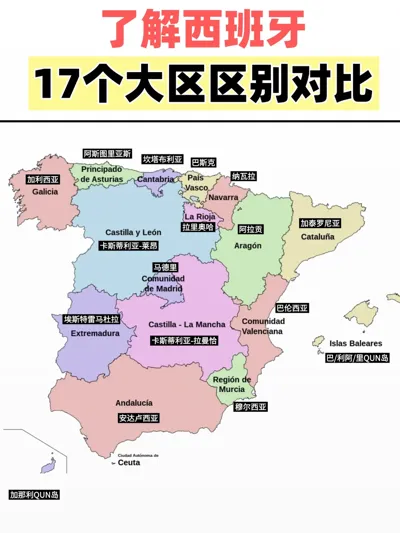 西班牙全国划分为17个自治区,每个地方各有特点,计划定居在西班牙的人,需对这些地方做一个了解。