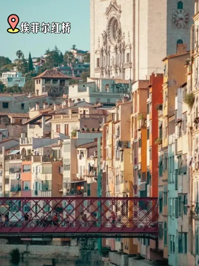 ✨ 桥下Onyar河两岸糖果色房子美哭!阳光洒下来像打翻调色盘,拍照根本停不下来~