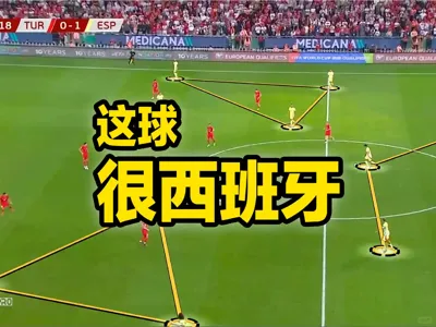 这球能打成首先是西班牙整体水平更好,阅读比赛更流畅,还有一个关键是土耳其的右边前场那个21号对对方进攻的阅读太缓慢…最后西班牙左边二打一下底,他居然还转了一圈去看接球的人,就这一个动作让他失去了两三米的身位,这球如果是个边后卫的阅读能力,直接就贴着跟上去了,不会让对方有那么舒服的空间传中