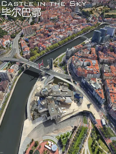 上帝视角下的毕尔巴鄂,静卧于西班牙北部内尔维翁河畔,蜿蜒水道与先锋建筑群交织出「工业重镇蜕变的艺术奇迹」。这座「古根海姆之城」以其建筑奇观、河岸复兴计划和美食文化闻名,是欧洲城市更新的典范,堪称巴斯克地区的「创意复兴史诗」。毕尔巴鄂是一座交融工业记忆与设计美学的转型之都,城市地标包括: