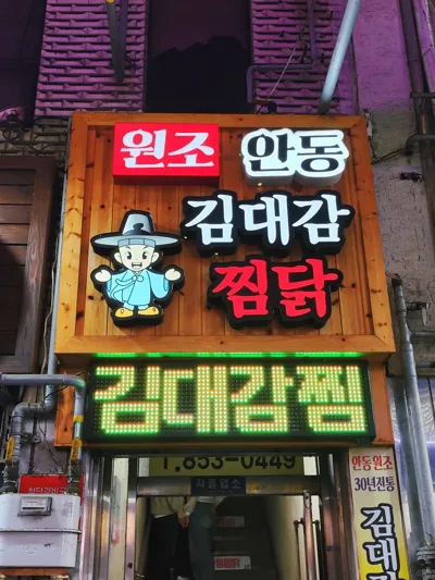 在安东必须尝尝炖鸡 (닭찜),是那边最出名的地道美食,本人去的是安东旧市场的其中一家,味道还不错,一份炖鸡可以吃3-4人 (p2-p4),尽量赶在吃饭时间前去,不然就得排长队,还有市场里面整条街都是卖炖鸡的,走到后面才有卖各式各样的小吃~
