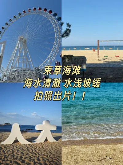 束草海滩(束草海水浴场)是韩国江原道一座非常受欢迎的海滨度假胜地。海滩全长约2公里,开放的沙滩区域长约1公里,宽75米。这里沙质良好,海水清澈,而且水浅坡缓,非常适合家庭游玩。沙滩后方还有一片茂密的松林,构成了独特的海滨景观。沙滩上散布着许多有趣的雕塑和装置艺术,都是非常出片的拍照点。