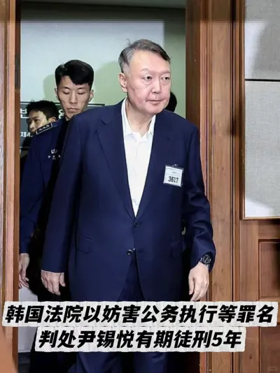 当地时间1月16日,韩国法院以妨害公务执行等罪名判处前总统尹锡悦有期徒刑5年。
