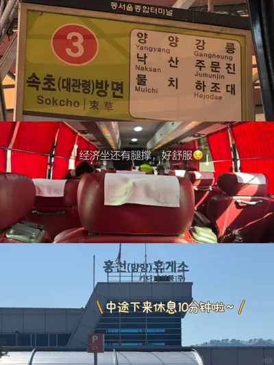 Tmoney go上可以预定束草往返的巴士,经济坐单人往返价格42600,车程2小时10分钟。也还有其他的价格可以选择,就是时间不太一样。
