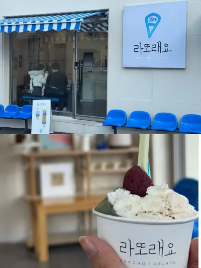 这个咖啡店是看攻略去的,靠近천진해수욕장,但真挺远的,公交车很难等,打车费用大概13000,甚至它已经不属于束草市了,在高成市。说实话不太建议去,如果真的想去也建议稍微早一点到,毕竟那边的海边也很美(p6),很多人在露营(果然首尔周边适合自驾)