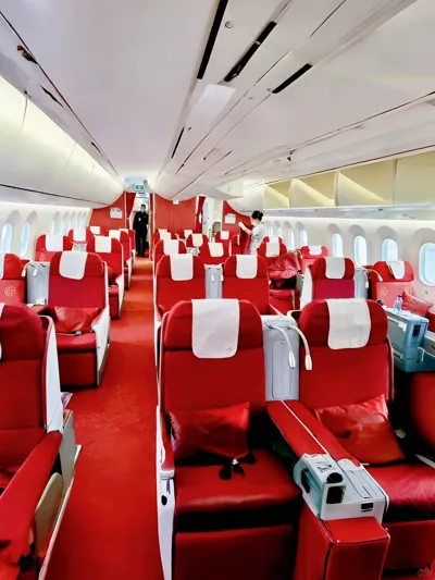 ✅ 商务舱主流为2-2-2“Aura Lite”大通铺布局,机龄7年,腿部空间117cm。