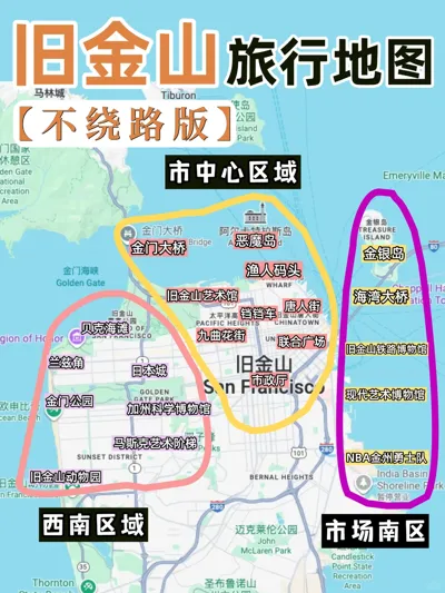 ✅ 小贴士:西南区域建议租辆自行车,在金门公园和周边穿梭更灵活!