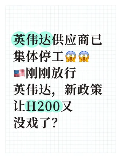 这些被迫停工的供应商,主要负责 H200 的核心部件,比如 PCB 印刷电路板等。由于整机无法顺利进入,继续生产零部件已经失去意义,只能按下暂停键。