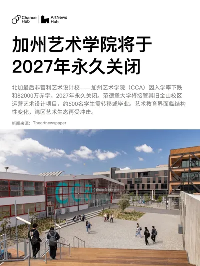 CCA创立于1907年,是北加唯一剩余的非营利艺术设计院校,历史可追溯至1922年在奥克兰运营的校园。该校以陶瓷、时尚、雕塑等专业及CCA Wattis当代艺术中心闻名,校友包括Jules de Balincourt等国际艺术家。2024年,CCA将活动整合至旧金山后曾斥资9750万美元翻新校区。