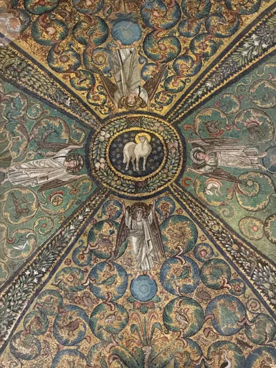 这是拉文纳最古老的洗礼堂之一。圆顶的基督受洗马赛克非常精细