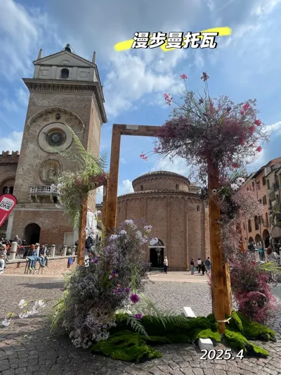 老城内当地的特色脆饼是曼托瓦的传统小吃,因为午餐在饭店消费,老板热情的送了我们一个当地的特色饼,是我在意大利吃到最好吃的饼🫓。正值周末,鲜花、集市和乐队让城市充满欢乐气氛,人山人海的游客让小镇充满热情❤️。