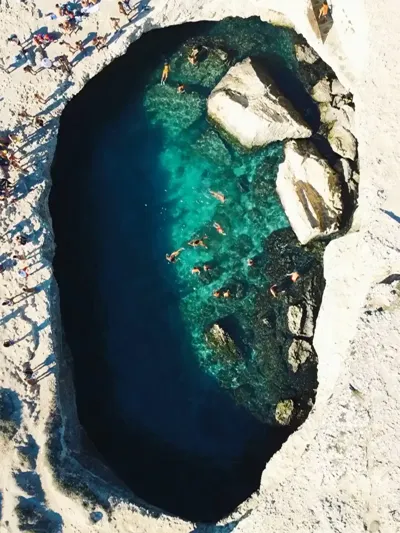 形成原因:世界上最美丽的天然泳池,诗意之洞 (Grotta della Poesia),是喀斯特地貌综合体的一部分,其中还包括另一个迷人的小型天然水池。这些洞穴曾经是覆盖着岩石的洞穴,随着时间的推移,大海的汹涌、岩溶和大气现象导致了天花板的塌陷,将它们变成了碧绿海水的天然水池,让任何有幸欣赏它们的人都惊叹不已
