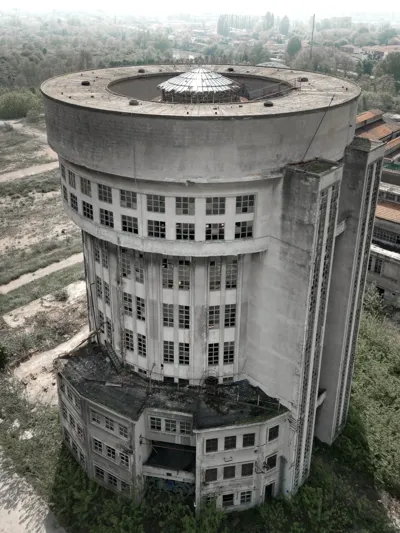 该建筑群曾隶属于意大利规模首屈一指的酒精工厂。档案显示,在其鼎盛的1960-70年代,日产量高达22万升乙醇,占据了全国产量的三分之一强。然而,随着欧盟共同农业政策对甜菜糖产业的补贴削减,其原料供应链断裂,最终在2007年全面停产,繁华落幕。