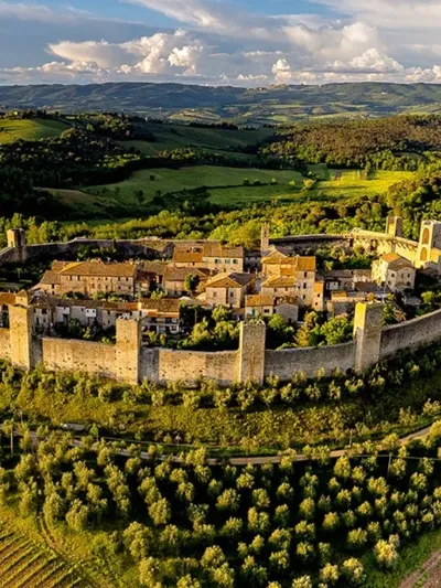 小镇建于13世纪,原是锡耶纳共和国为抵御佛罗伦萨而修建的军事要塞。环形城墙有14座塔楼,至今仍保存完整,被誉为“托斯卡纳最完美的城堡小镇”。