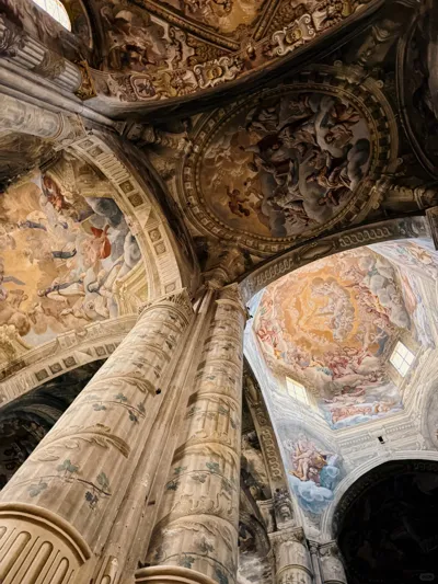 这些巴洛克式又带点洛可可颜料感的壁画叙事让人百看不厌,直到⛪要关门了,工作人员告诉我们今天⛪里的灯坏了,不然也许拍出来配合光线会更美。