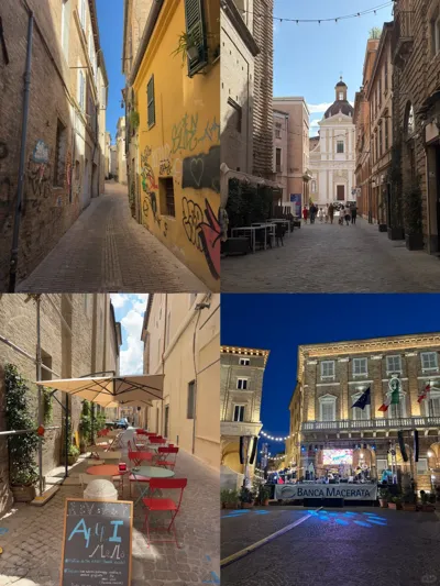 地理环境:马切拉塔和罗马一样是意大利中部城市,与罗马相对,位于意大利东部的马尔凯大区。整座城市市中心位于山上,我所居住的Villa Lauri更是在山顶。中心城市围绕马切拉塔主城区建立,主城区由老城墙围绕,入口由Stadio Della Vittoria体育中心正对的主街进入,到达马切拉塔剧场结束,有人甚至说主城区只有天安门广场一样大。城市日常人很少,只有每年少有的几个节日人很多,这次刚好遇到他们8月30-31日的圣朱利亚诺节(Festa di San Giuliano),主城区第一次人满为患,亲生体验了一下当地节日氛围。