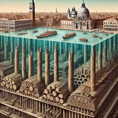 自公元 421 年以来,威尼斯就坐落在泻湖粘土底部嵌入的数百万根树干上。支撑整个城市的不是钢铁或混凝土,而是大部分是赤杨木,还有一些橡木。