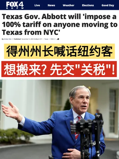 ️ 但就在纽约市民投票前后,德州州长格雷格·阿博特(Greg Abbott) 突然“搅局”——