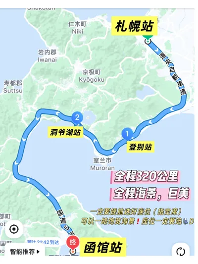 ▫️洞爷➟函馆:2小时左右,每1-2小时一班,奇数D座位,类似13579