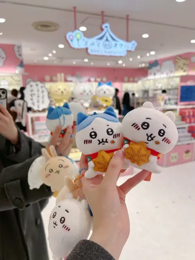新年早早就被抓来出差,查一下发现广岛也有ちいかわらんど,于是下班就跑过来大买特买,上来就拿好三小只去付钱,付完钱在电梯口等我的同事问我怎么我买的娃娃啥也没有,我说什么意思,他指着广岛限定的角落说那边的娃娃都穿着衣服或者抱着广岛特产,我